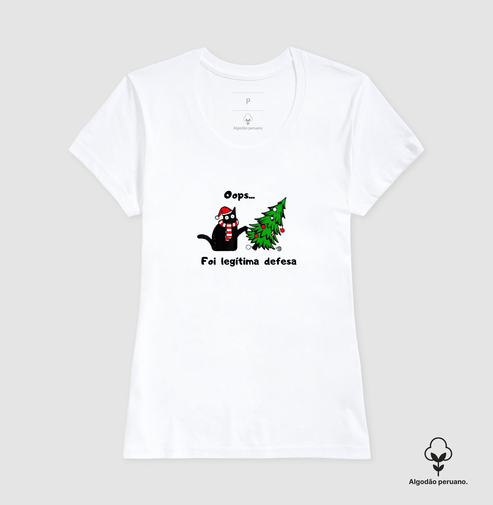 O clássico caos felino de fim de ano agora virou uniforme oficial. A camiseta traz o gato preto derrubando a árvore de Natal com a frase “Oops... foi legítima defesa”, em uma peça leve, divertida e pronta para acompanhar sua rotina agitada.