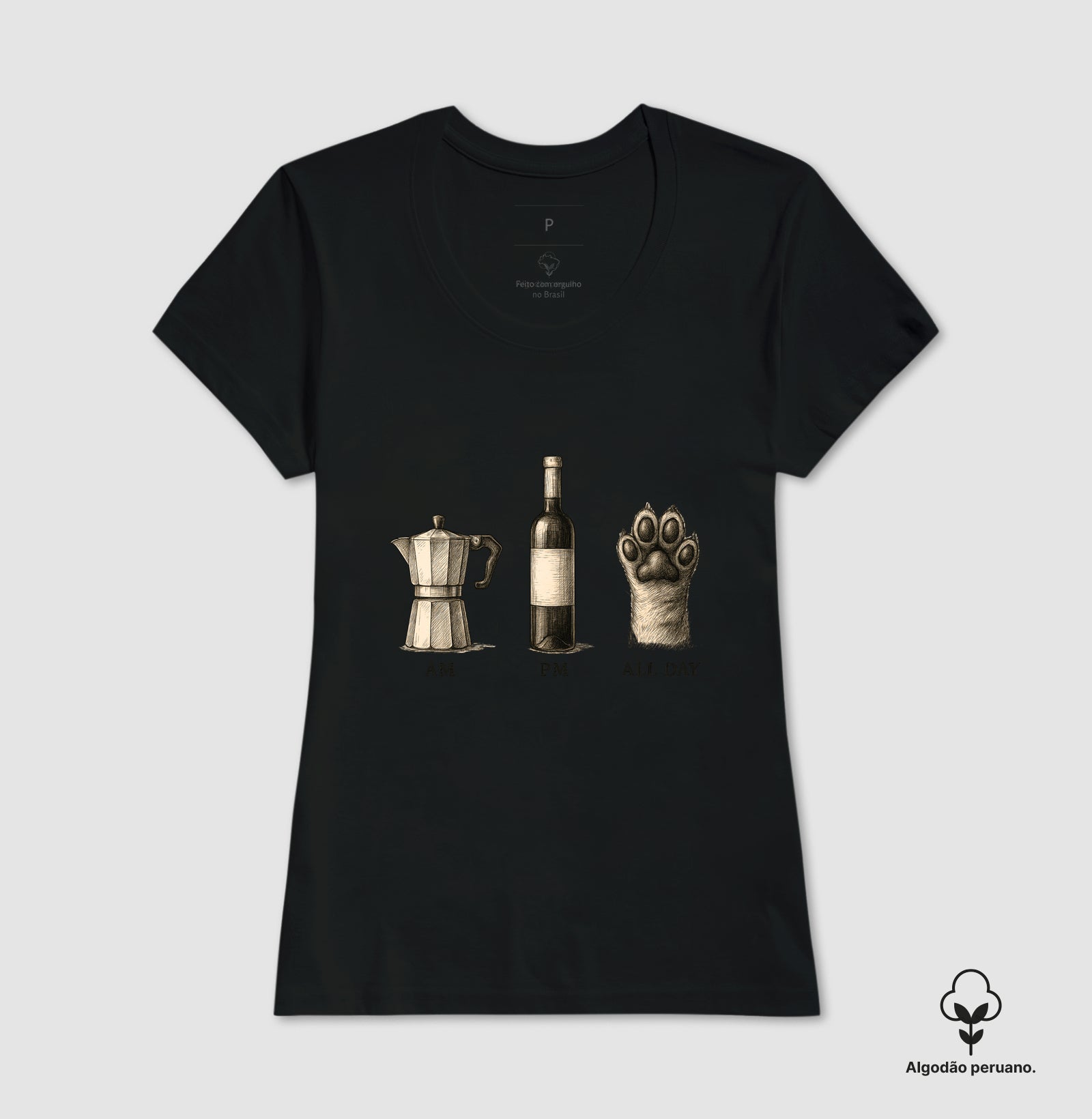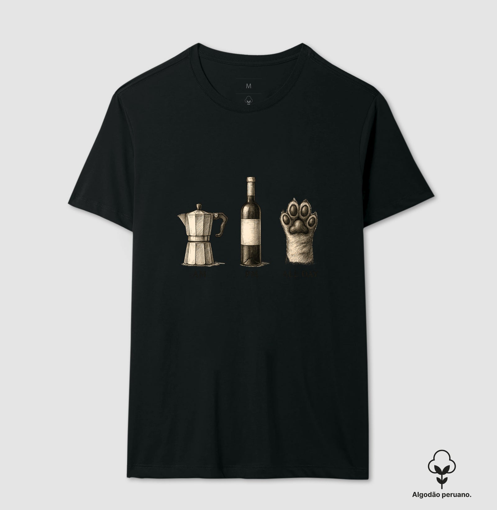 Se o seu dia começa no café, termina no vinho e o pet está em todos os rolês, esta camiseta em algodão peruano premium foi feita para acompanhar sua rotina intensa com conforto do primeiro ao último compromisso.
