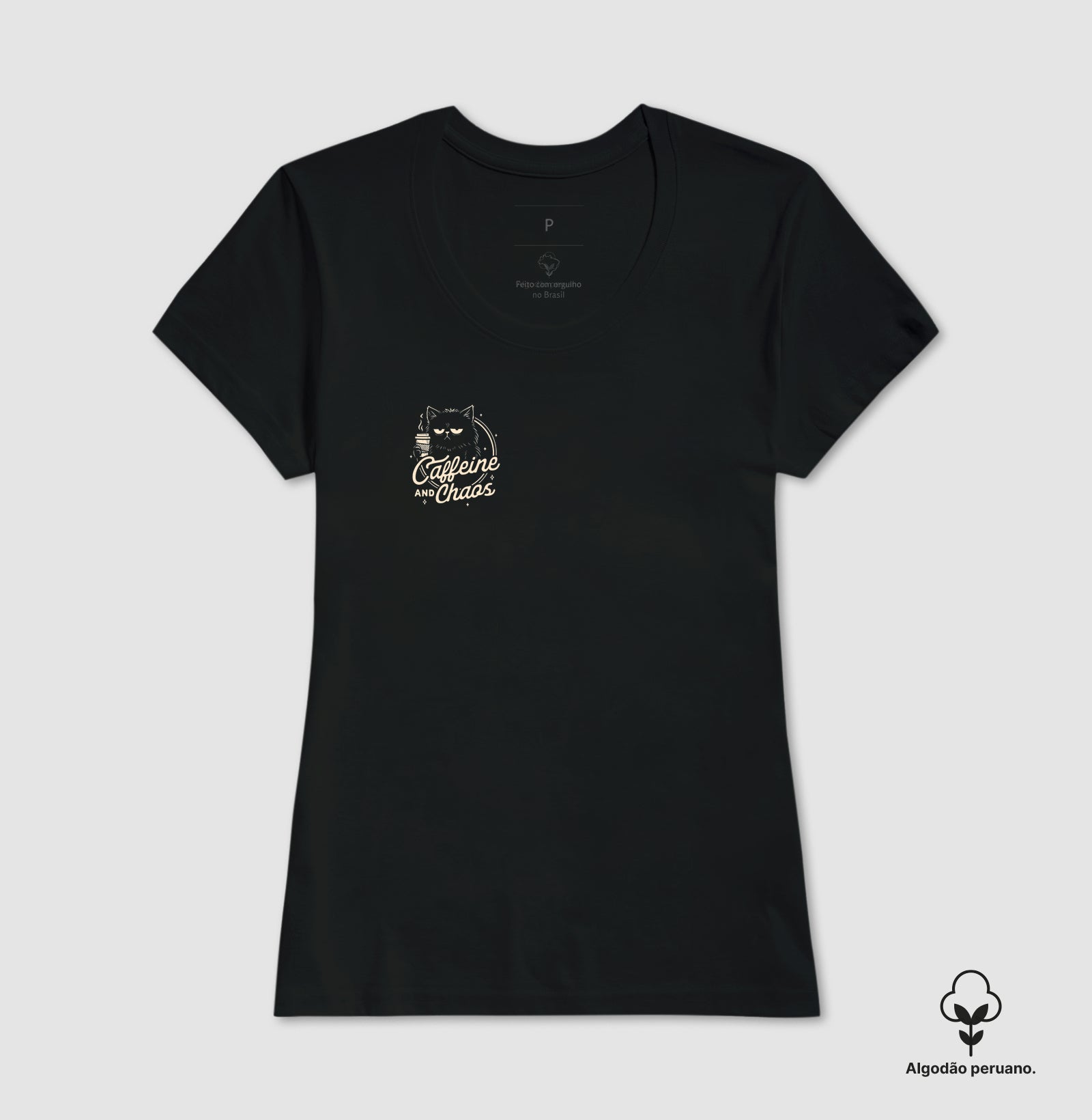 A camiseta Caffeine & Chaos Gato em algodão peruano premium foi criada para quem toca o dia entre café, prazos e deslocamentos pela cidade. A arte minimalista do gato no peito traduz o caos da rotina intensa, enquanto o tecido macio mantém o corpo confortável do primeiro espresso até o último compromisso.