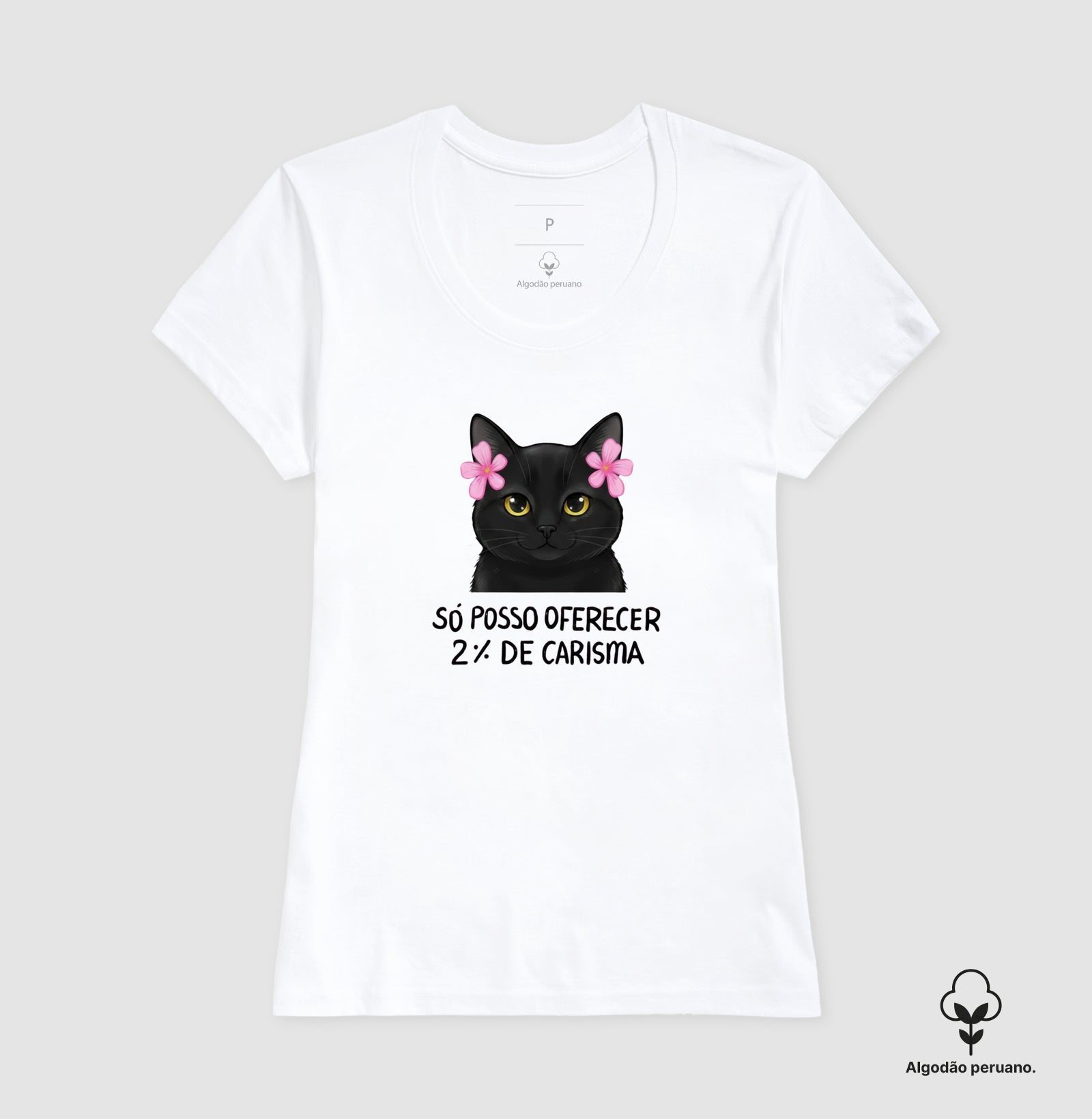 Camiseta Só Posso Oferecer 2% de Carisma Para quem é seletivo com a própria energia e sabe que a simpatia tem limite. A camiseta 2% de Carisma traz um gatinho preto charmoso, com flores nas orelhas e um olhar penetrante, traduzindo aquela vibe de quem é fofo, mas prefere manter a distância social com muito estilo. Estilo para o dia a dia Ideal para eventos sociais onde você quer deixar claro o seu "limite de bateria", a peça combina a fofura estética com uma mensagem direta e divertida. Estampa exclusiva de gato preto com flores rosa e a frase "Só posso oferecer 2% de carisma". Visual equilibrado que mistura elementos delicados com um humor ácido e moderno. Cores contrastantes que destacam a ilustração no peito, perfeita para fotos e rolês casuais. Conforto para quem economiza energia Pensada para quem valoriza o bem-estar acima de tudo, a camiseta oferece um toque suave que combina com o seu modo de "pouca interação". Corte clássico que garante liberdade sem esforço. Tecido macio, ideal para enfrentar o dia (mesmo com o carisma baixo). Gola reforçada para manter a estrutura da peça por muito mais tempo. Para quem é esta camiseta? Perfeita para introvertidos, amantes de gatos pretos e pessoas que levam a vida com honestidade brutal. Fãs de gatos que sabem que, assim como os felinos, a gente só é simpático quando quer. Personalidades autênticas que preferem a sinceridade de um "pouco carisma" do que a falsidade de um sorriso forçado. Presente criativo para aquele amigo que é a "nuvenzinha negra" mais amada do grupo. Por que escolher a 2% de Carisma? Além de ser uma peça leve e confortável, ela serve como um aviso amigável: eu estou aqui, mas não espere muito entusiasmo hoje. Expressa sua vibe de forma visual, evitando conversas desnecessárias. Versatilidade total, funcionando bem com jeans, saias ou até aquele moletom de ficar em casa. Fácil de combinar com acessórios minimalistas ou um bom fone de ouvido. Use a camiseta Só Posso Oferecer 2% de Carisma e deixe o mundo saber que sua bateria social está no modo economia – e você nunca esteve tão bem.