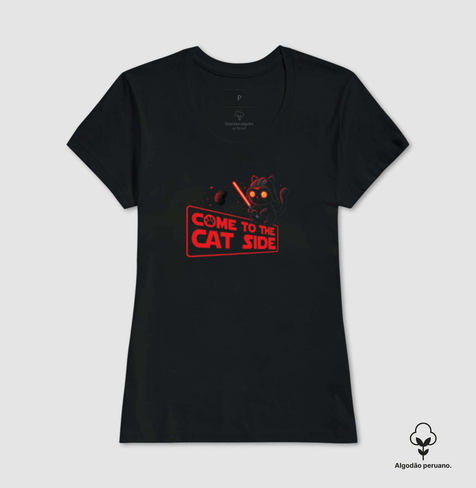 A camiseta Come to the Cat Side une humor nerd, universo sci-fi e amor por gatos em uma peça leve, macia e pronta para acompanhar seu dia inteiro – da maratona de séries ao rolê com os amigos.