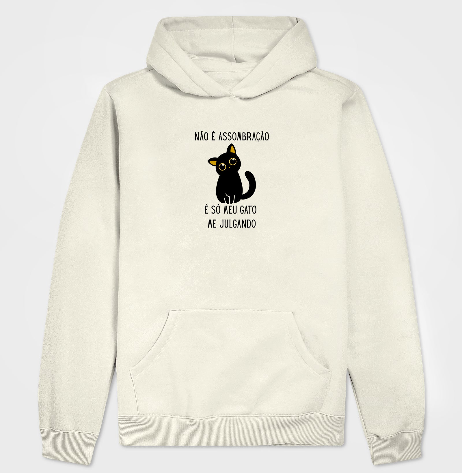 Se você já sentiu aquele olhar atravessado no meio da sala, calma: não é assombração, é só seu gato te julgando. Este moletom une humor e conforto para quem vive grudado no bichano e encara a rotina com leveza.