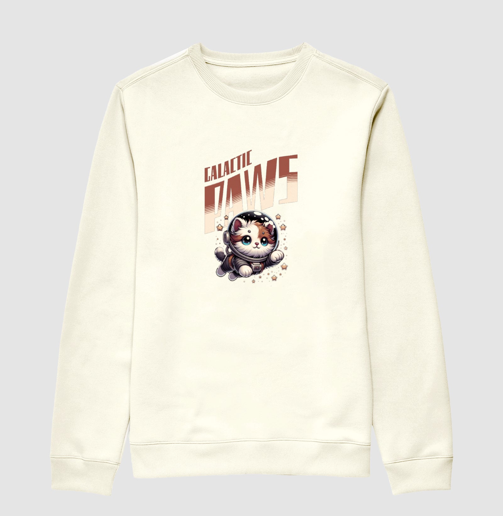 O moletom Galactic Paws leva um gatinho astronauta superfofo para acompanhar seu dia a dia, da academia ao rolê geek. Confortável, macio e com estampa marcante, ele combina com um estilo de vida ativo e apaixonado por gatos e universo.