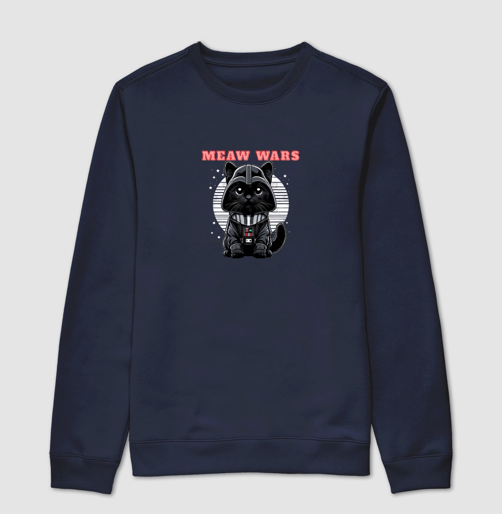 O moletom Meaw Wars une universo geek e amor por gatos em uma peça confortåvel para o dia a dia. A arte traz um gato preto em armadura sombria, pronto para dominar a galåxia com muito estilo.