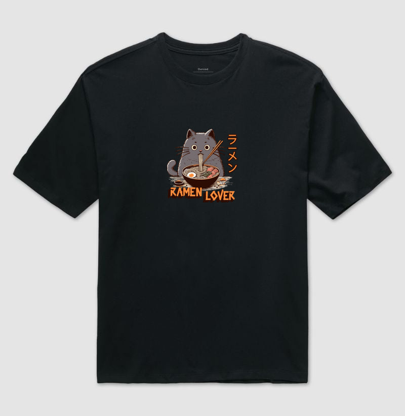 Com estampa exclusiva de um gatinho saboreando ramen, ideogramas japoneses e a frase "Ramen Lover", ela combina com looks casuais, rolês geeks, passeios com amigos e qualquer programa descontraído.