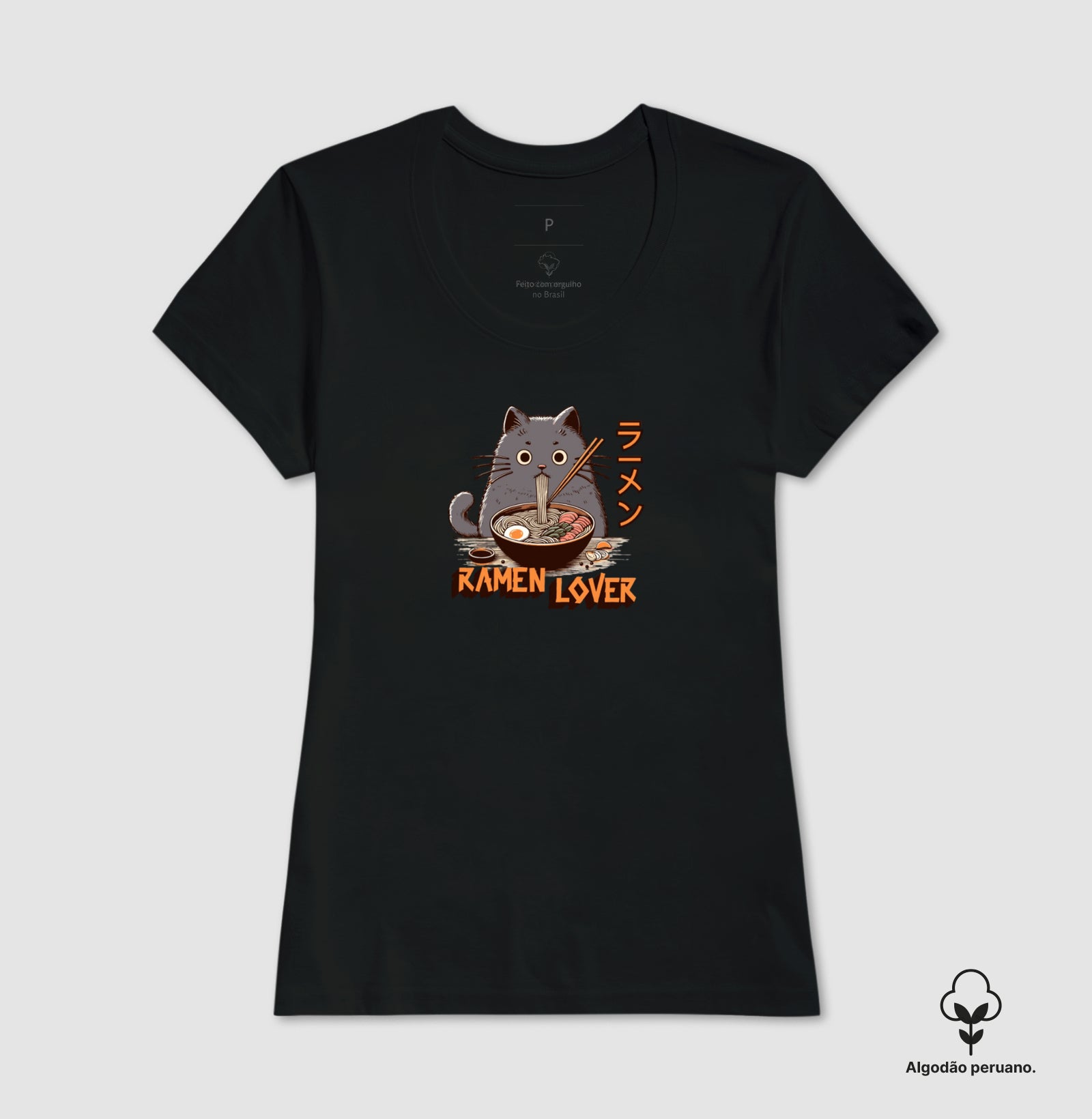 Camiseta Ramen Lover Gato em Algodão Peruano